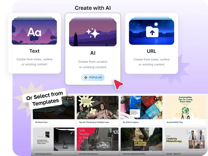 Menghasilkan Video Berdurasi Panjang dalam Semua Bahasa & Topik, Dengan Obrolan AI | Dari URL | Dari Template | Dari Blank Canvas